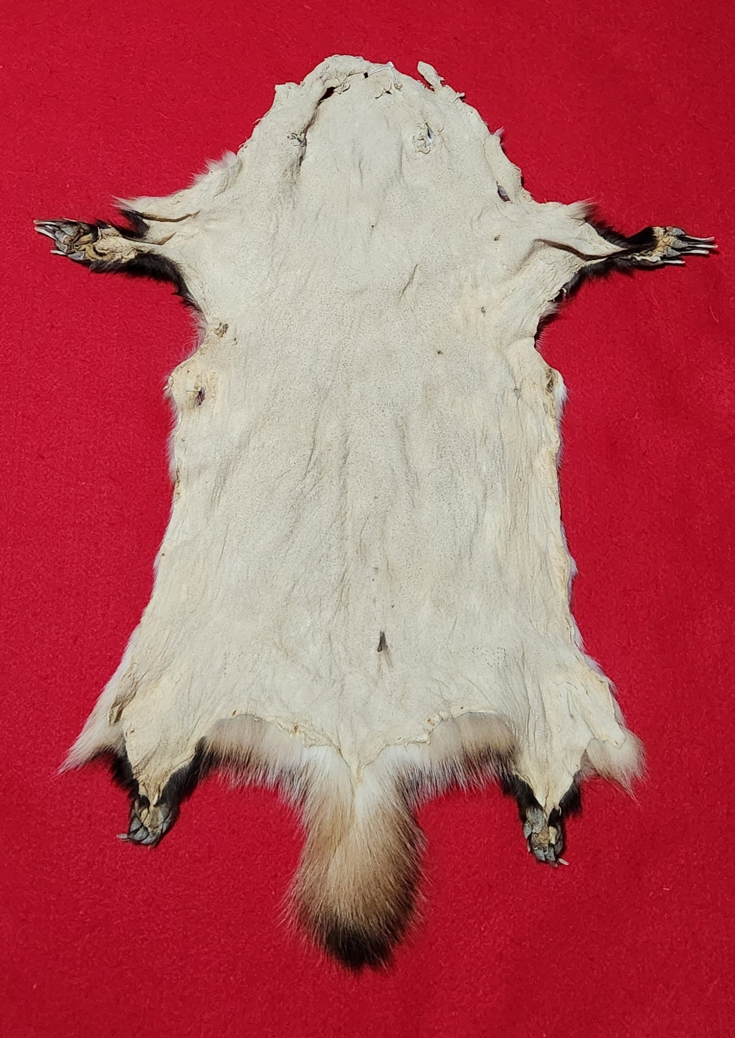 Medium sized south Idaho badger hide. Open skinned up the center of the abdomen. 24" from nose to base of tail, 29" total length. Nice black guardhairs with white tips and paler underfur. January quality fur. Thick and dense fur. Suitable for a simple rug or a couch throw. Could be laced on a hoop for display. Has feet, claws, and complete tail attached. Has beautiful long claws on the front feet. Has a 1/8" diameter hole in the snout. Please see pictures for slight defects in leather. Beautiful badger pelt!